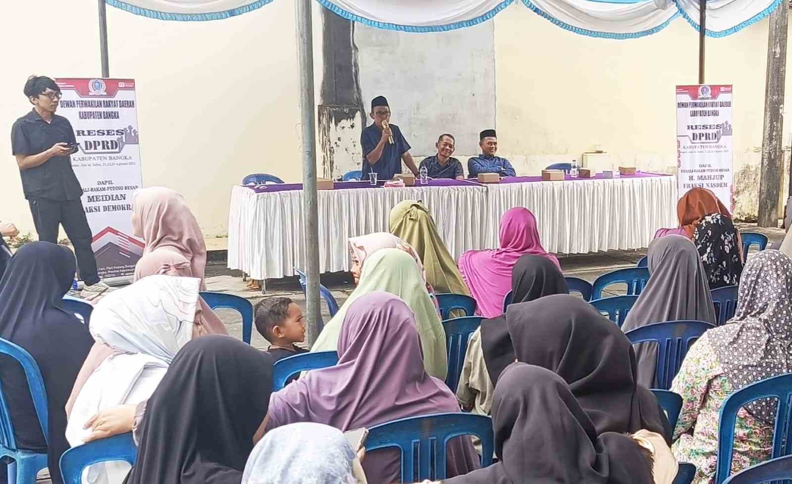 Pemali, portalbabel —Serap Aspirasi Didaerah Konstituen, Anggota DPRD Kabupaten Bangka H.Mahjub dari fraksi Nasdem Bersama Median melakukan reses di Desa Karya Makmur Dusun Air Pengabis ,Sabtu (23/8/25).