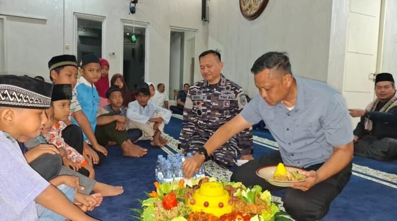 Belinyu, portalbabel — Pangkalan TNI AL Bangka Belitung menggelar doa bersama anak yatim piatu dalam rangka memohon kepada Allah Swt agar mendapatkan kelancaran, kesuksesan dan keselamatan kepada para prajurit TNI yang akan melaksanakan latihan gabungan (Latgab) TNI tahun 2025 di Provinsi Kep. Bangka Belitung. Kegiatan dilaksanakan di Mesjid Nurullah Mako Lanal Babel Jl. Tanjung gudang Kec Belinyu Kab Bangka. Senin, (17/11/ 2025)