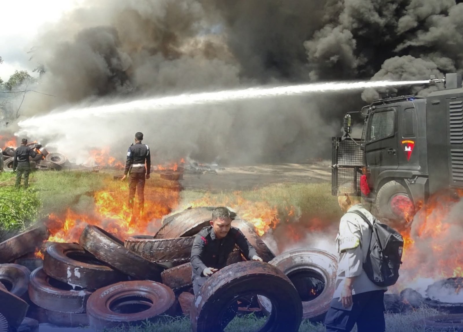 Dalam operasi pemadaman, Brimob bersama Dinas Pemadam Kebakaran Kota Kendari, Damkar Kabupaten Konawe Selatan, serta komunitas pemilik mobil tangki air bekerja sama memadamkan kobaran api yang membakar ribuan ban bekas di lahan seluas sekitar 2,5 hektare.