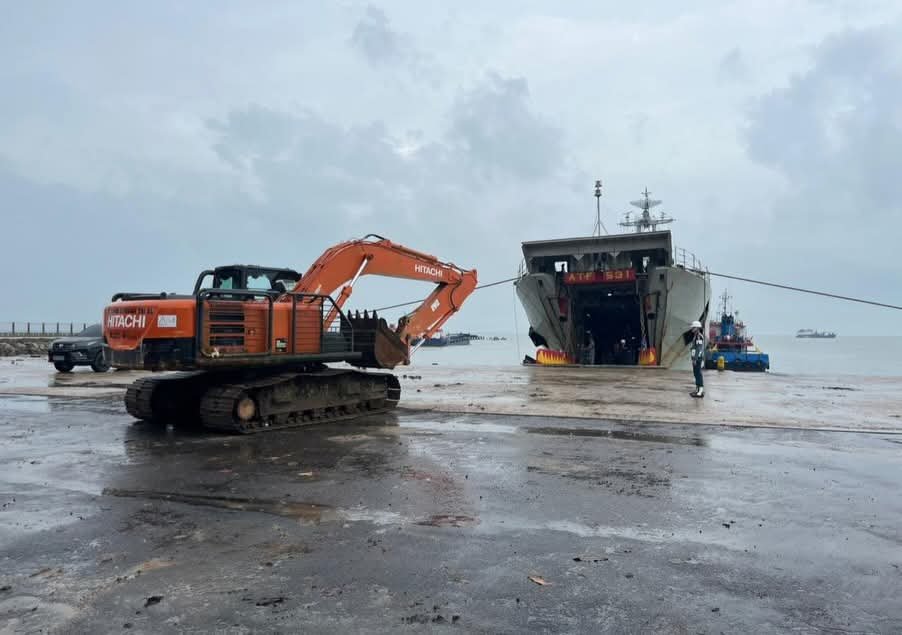 Excavator tersebut dikirim ke Pelabuhan Menkiong, Muntok, Kabupaten Bangka Barat, untuk kemudian diberangkatkan ke wilayah Sumatera Utara dengan menggunakan Kapal Republik Indonesia Teluk Gilimanuk-531 (KRI TGK-531) Komandan KRI TGK-531 Letkol Laut (P) Erwin Dwi Febrianto.