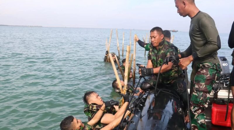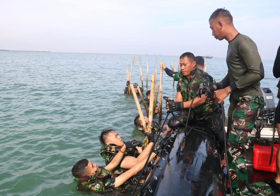 Danyonif 4 Marinir Bersama Prajurit Bongkar Pagar Laut Tanggerang