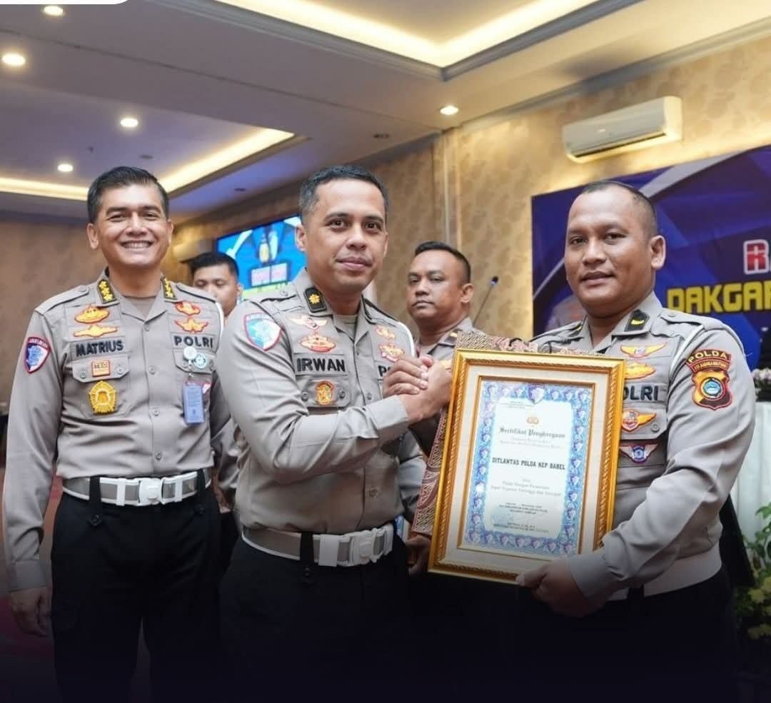 Jakarta, portalbabel – Direktorat Lalu Lintas (Ditlantas) Polda Bangka Belitung menerima penghargaan dari Korps Lalu Lintas (Korlantas) Polri atas prestasi dan kinerjanya pada Rapat Anev Dakgar Lantas T.A 2025, Jumat (21/11/25).
