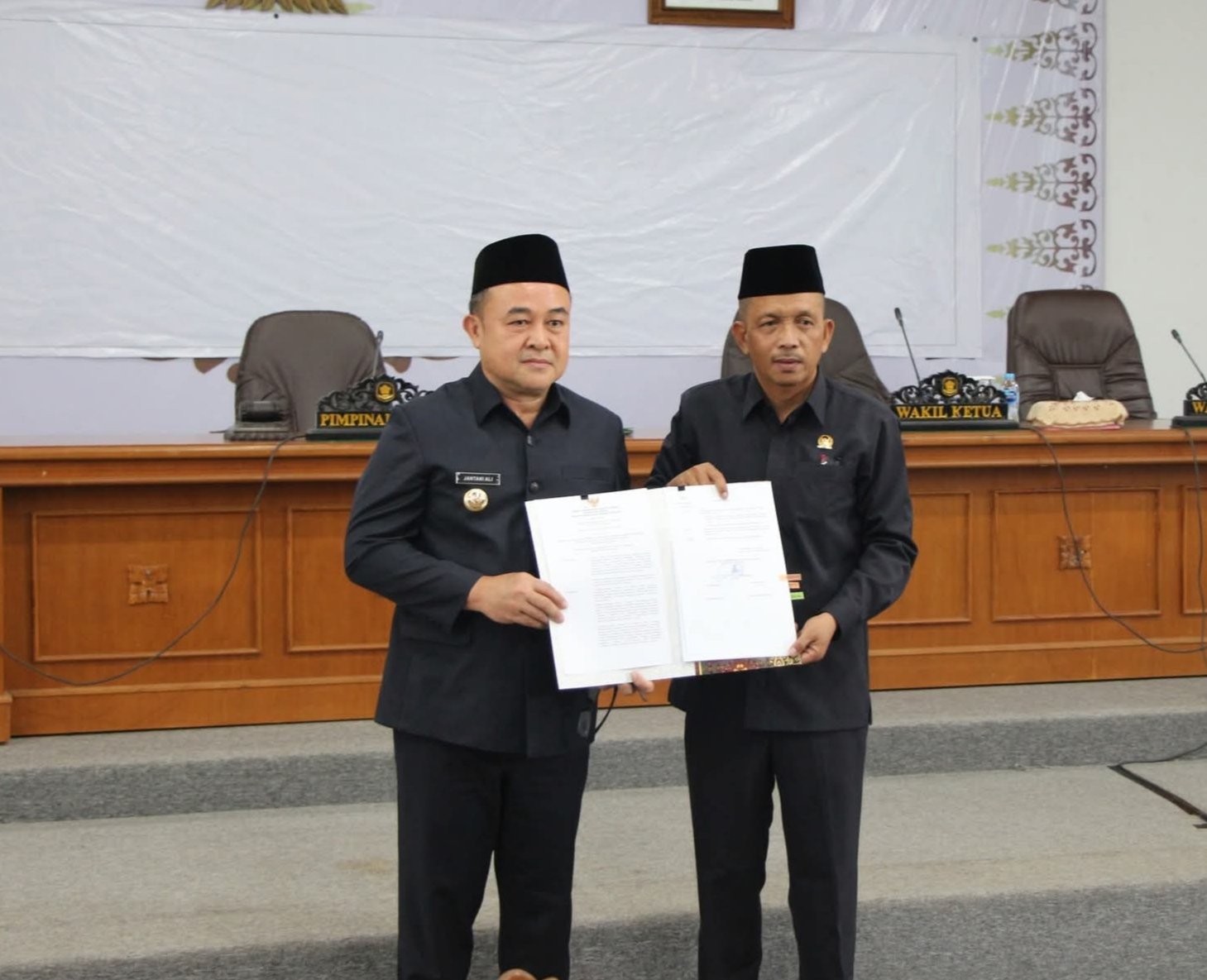 Pj.Bupati Bangka Jantani Ali,ST dalam sambutannya mengucapkan terima kasih dan penghargaan yang setinggi-tingginya kepada pimpinan dan anggota DPRD kabupaten Bangka, panitia khusus IV dan panitia khusus V, fraksi-fraksi dewan dan segenap anggota dewan atas segala kinerja dan segenap kemampuan yang dicurahkan dalam membahas Raperda tentang perubahan atas peraturan daerah nomor 7 tahun 2023 tentang pajak daerah dan retribusi daerah serta Raperda tentang perlindungan lahan pertanian pangan berkelanjutan (LP2B), sehingga secara legal formil dan legal materiil dapat diberlakukan sebagai perda kabupaten Bangka.