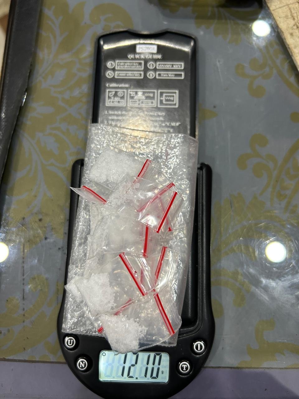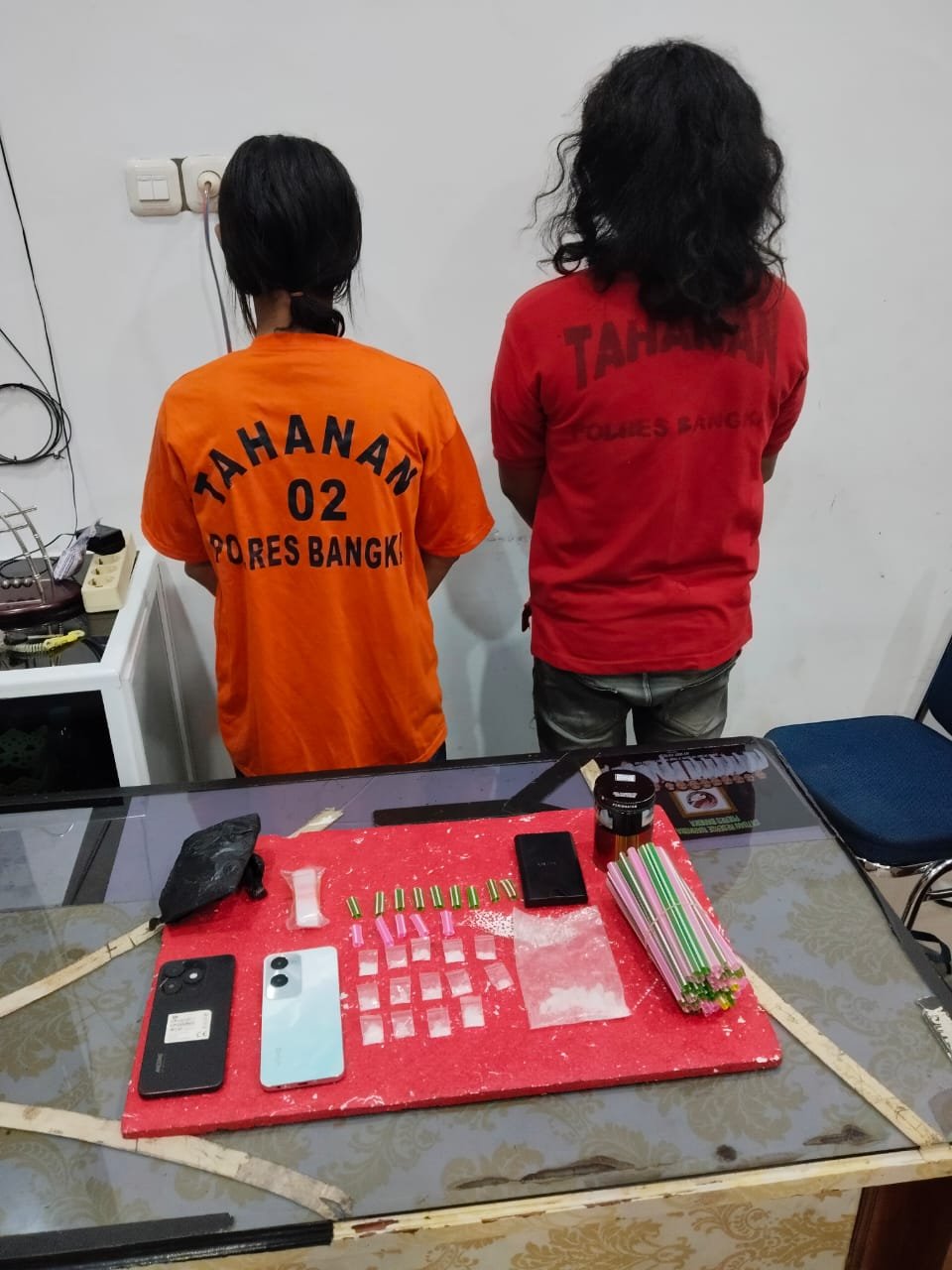 Dalam penggerebekan tersebut, polisi menemukan barang bukti berupa satu klip besar berisi kristal putih yang diduga sabu dengan berat bruto 12,10 gram. Selain itu, ada 14 plastik klip kecil berisi sabu, sembilan potongan sedotan hijau, lima potongan sedotan merah muda, satu timbangan digital, dan perlengkapan lainnya untuk mengemas sabu.