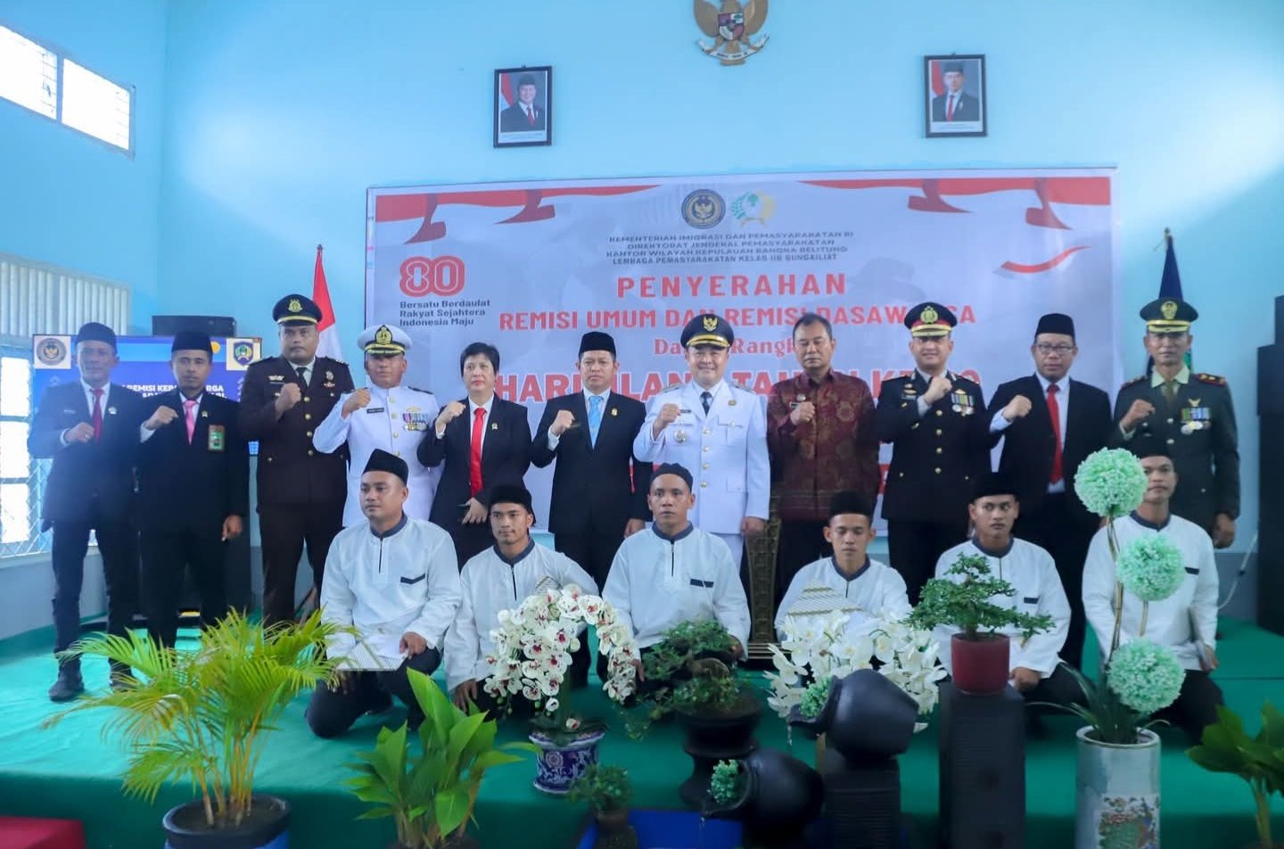 Pj. Bupati Bangka Jantani Ali dalam hal ini menyampaikan bahwa remisi yang diterima ini bukan diberi secara sukarela, namun merupakan sebuah bentuk apresiasi dan penghargaan bagi nara pidana dan anak binaan yang telah bersunguh sungguh mengikuti program pembinaan yang di selenggarakan oleh unit pelaksanan teknis permasyarakatan dengan baik dan terukur.