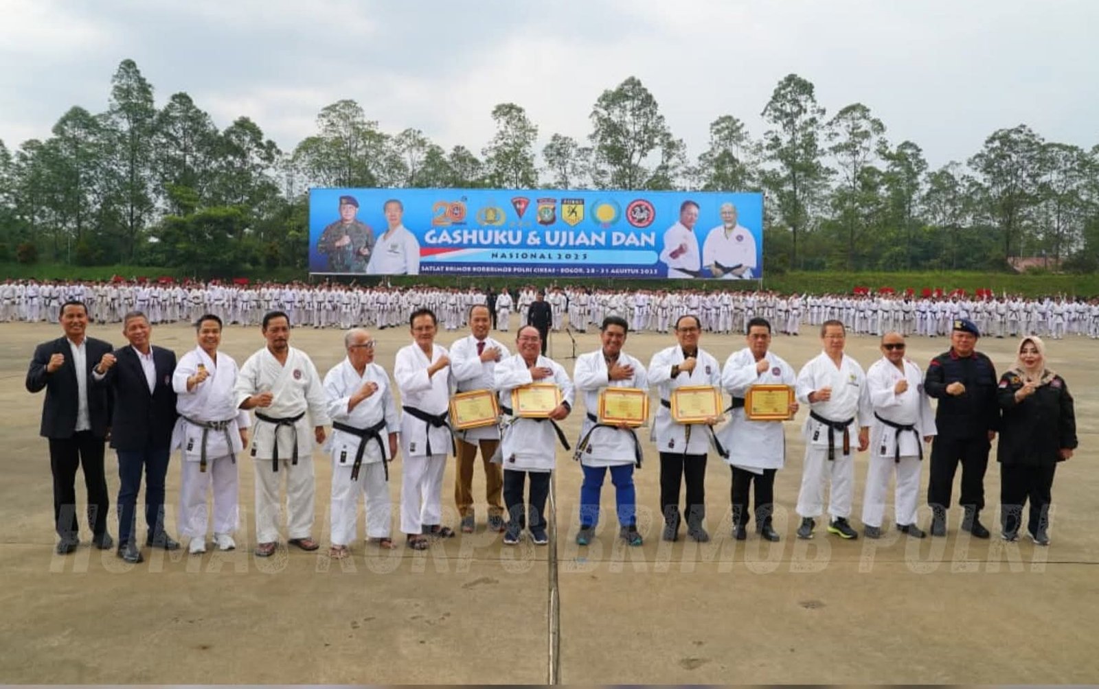 Upacara pembukaan Gashuku & Ujian DAN Nasional dipimpin oleh Ketua Harian PB. INKANAS Komjen Pol. (Purn.) Condro Kirono di Lapangan Nagara Janottama Satlat Brimob. Kamis (28/8/2025).