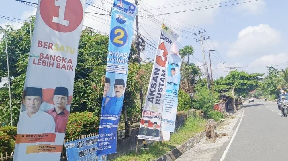 APK yang difasilitasi KPU terdiri dari Baliho, Spanduk, dan Umbul-Umbul yang dipasang pada titik-titik yang telah ditentukan sesuai Keputusan Komisi Pemilihan Umum Kabupaten Bangka Nomor 116 Tahun 2025 tentang Penetapan Lokasi Pemasangan Alat Peraga Kampanye Pemilihan Bupati dan Wakil Bupati dalam Pemilihan Ulang Kabupaten Bangka Tahun 2025.