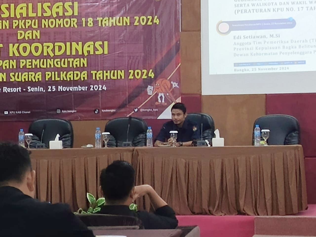 KPU Bangka Gelar Sosialisasi PKPU 17-18 & Rakor Tahapan Pemungutan dan Perhitungan Suara Tahu 2024