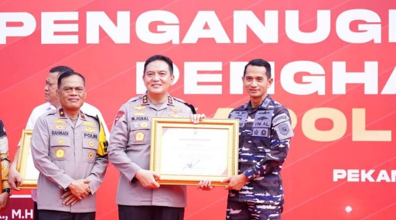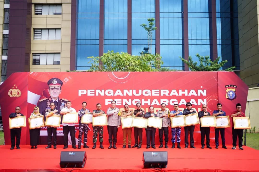 Anugerah penghargaan tersebut diberikan langsung oleh Kapolda Riau Irjen Pol Mohammad Iqbal, S.IK., M.H., kepada Lanal Dumai dan jajaran Forum Koordinasi Pimpinan Daerah (Forkopimda) sebagai apresiasi karena telah membantu Polda Riau dalam menjaga keamanan dan ketertiban masyarakat di wilayah provinsi Riau.