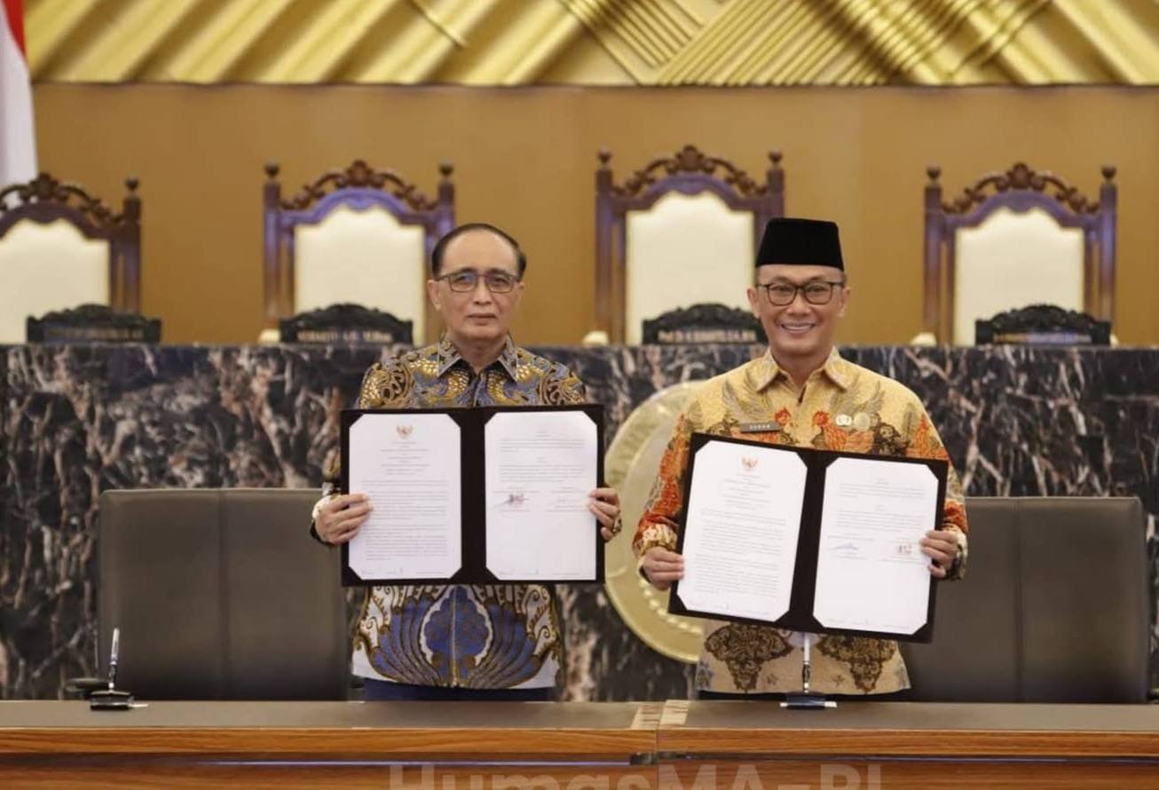 Penandatanganan Nota Kesepahaman dilakukan antara Ketua Mahkamah Agung RI, Prof. Dr. Sunarto, S.H., M.H. dan Kepala Badan Kepegawaian Negara, Prof. Dr. Zudan Arif Fakrulloh, S.H., M.H. pada Rabu (15/4) di Lt. 14 Tower MA, Jakarta Pusat.