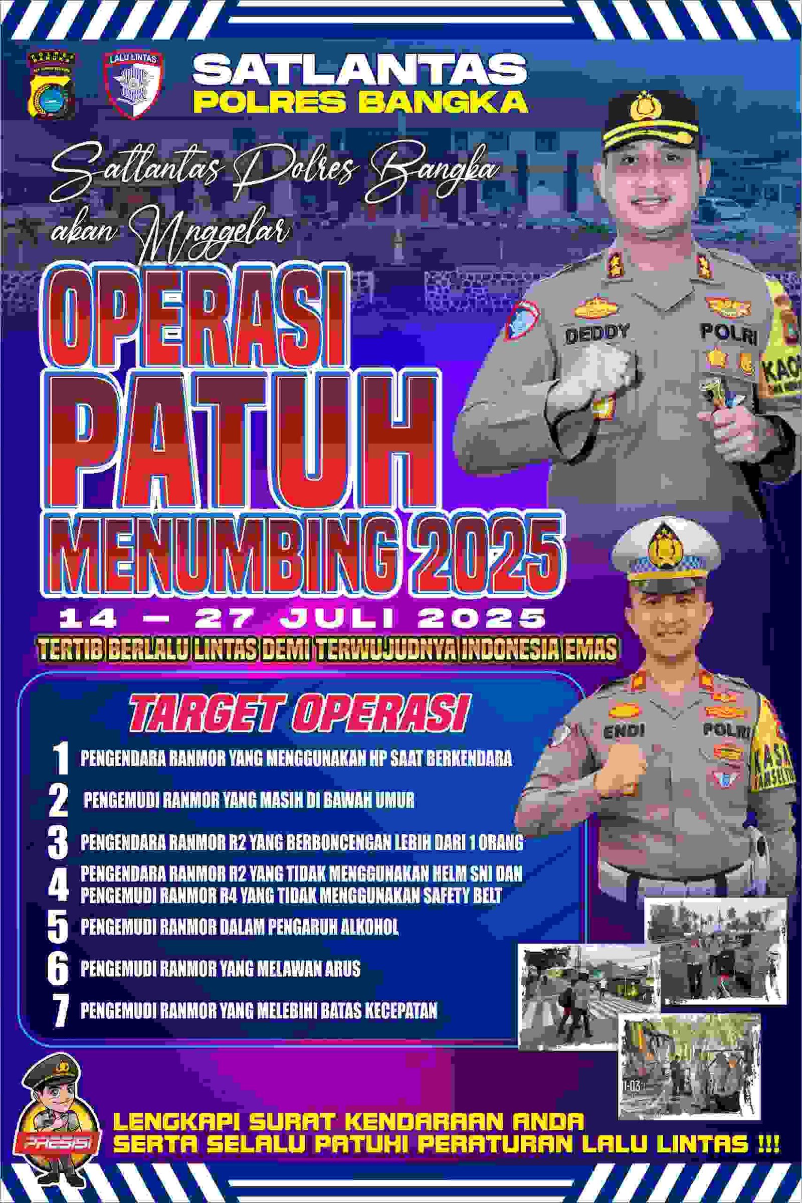 Bangka, portalbabel — Satuan Lalu Lintas Polres Bangka resmi menggelar Operasi Patuh Menumbing 2025 yang akan berlangsung selama 14 hari, mulai 14 hingga 27 Juli 2025.