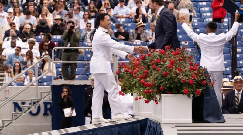 Pada upacara militer pelantikan para perwira muda lulusan USNA, Wakil Presiden Amerika Serikat J.D. Vance dalam pidatonya memberikan penghormatan terhadap dedikasi dan keberagaman Lulusan USNA Angkatan 2025, serta menyoroti peran penting Midshipman internasional sebagai perwujudan kerja sama global. “Kalian adalah tulang punggung masa depan Angkatan Laut. Dengan keberanian, dedikasi, dan semangat pengabdian, kalian menjadi teladan nilai-nilai luhur di tengah dunia yang terus berubah,” ujar Vance.
