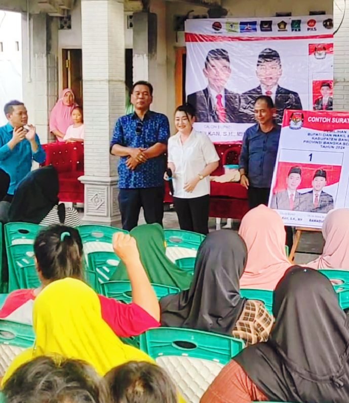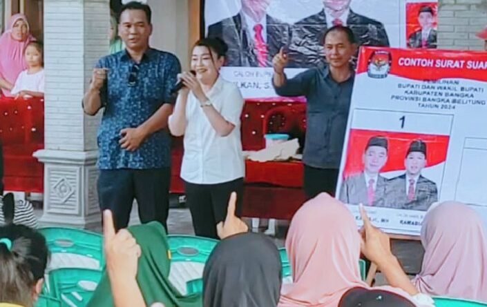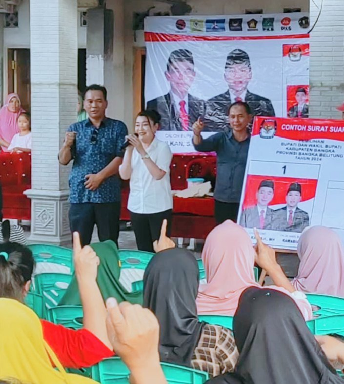 ” Sudah belasan tahun kenal beliau Saya tahu jiwanya seperti apa jangan ragu jangan bimbang tentukan pilihan mari kita coblos nomor satu Mulkan dan rahmadian. kata Ce nini dalam kampanye MAPAN Mulkan – Rahmadian di dusun Bintet Belinyu, Jum’at (22/11/2024).