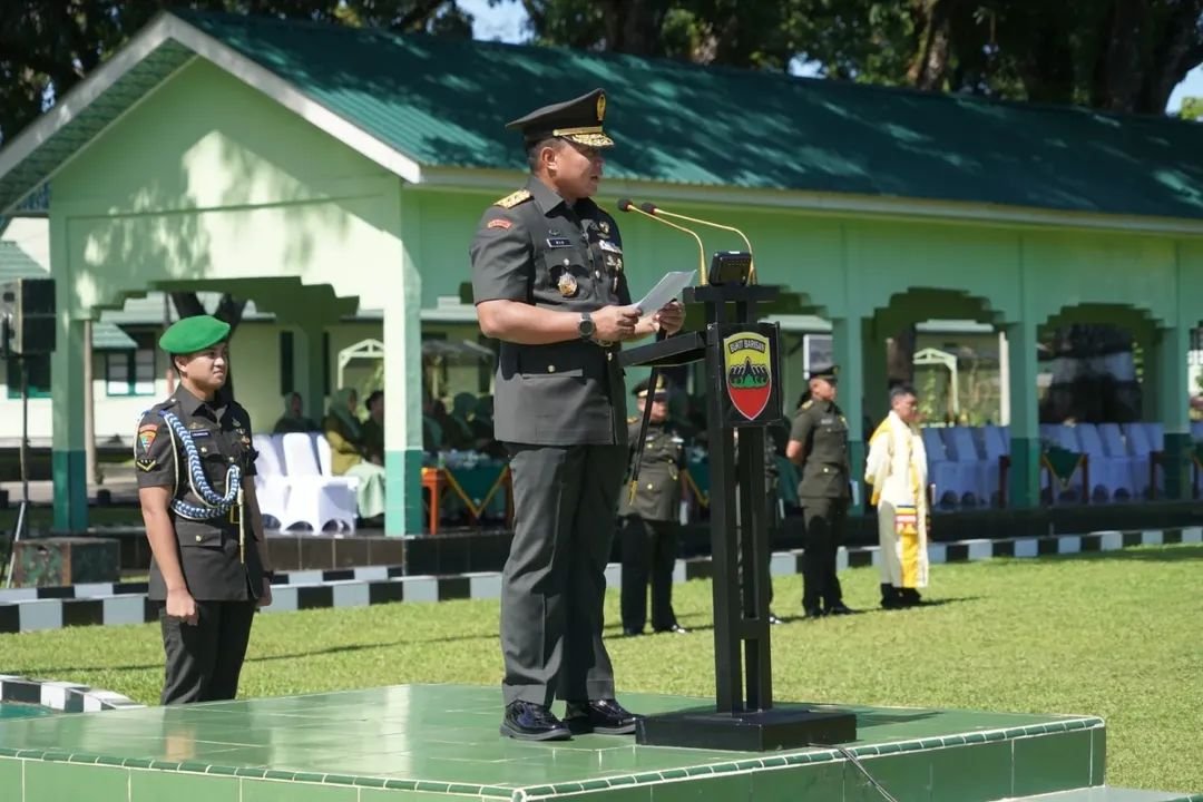 Pematangsiantar, portalbabel – Pangdam I/Bukit Barisan Mayjen TNI Rio Firdianto pimpin upacara penutupan Pendidikan Pertama Bintara (Dikmaba) Infanteri TNI AD tahun anggaran 2025 di Lapangan Jenderal Sudirman, Rindam I/BB, Pematangsiantar, Sabtu (6/9/2025).