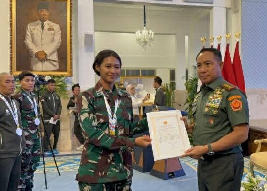 Jakarta, portalbabel — Panglima TNI Jenderal Agus Subiyanto memberikan kenaikan pangkat kepada sejumlah anggota peraih medali di SEA Games 202. Pengangkatan pangkat tersebut dilaksanakan langsung setelah Presiden Prabowo Subianto memberikan bonus kepada mereka.