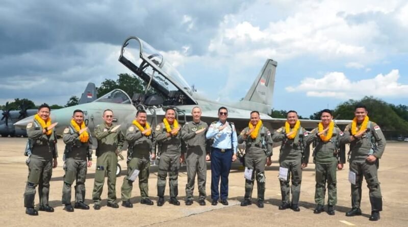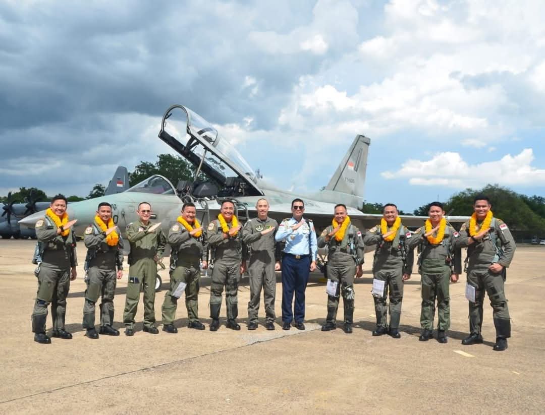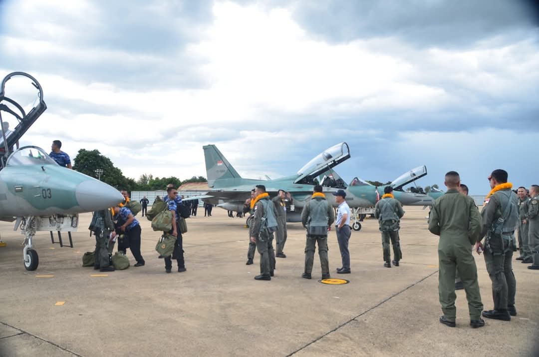 Portalbabel — Menjelang Latihan Bersama (Latma) Elang Thainesia XX/2025 antara TNI Angkatan Udara (TNI AU) dan Royal Thai Air Force (RTAF), empat pesawat tempur T-50i Golden Eagle TNI AU tiba di Wing 1 RTAF, Korat AFB, Thailand.