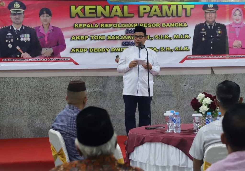 Sungailiat, portalbabel – Plh. Sekda Bangka, Thony Marza, A.P , menghadiri kegiatan pisah sambut Kapolres Bangka dari AKBP Toni Sarjaka, S.H., S.I.K., M.I.K., kepada AKBP Deddy Dwitiya Putra, S.H., M.I.K., Kamis (27/03/25) di Aula Tribrata Polres Bangka.