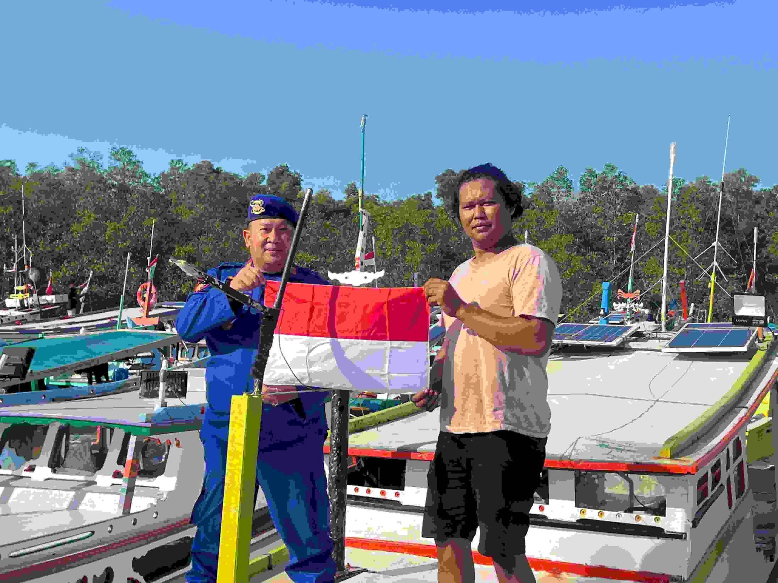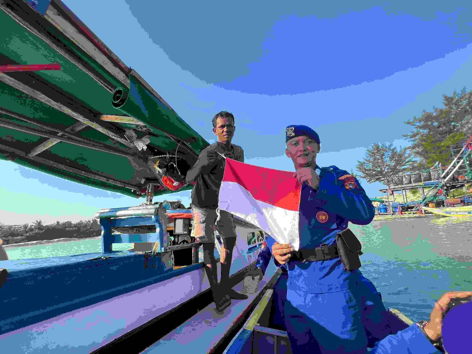 Sat Polairud Bangka Bagi 250 Bendera Merah Putih ke Nelayan