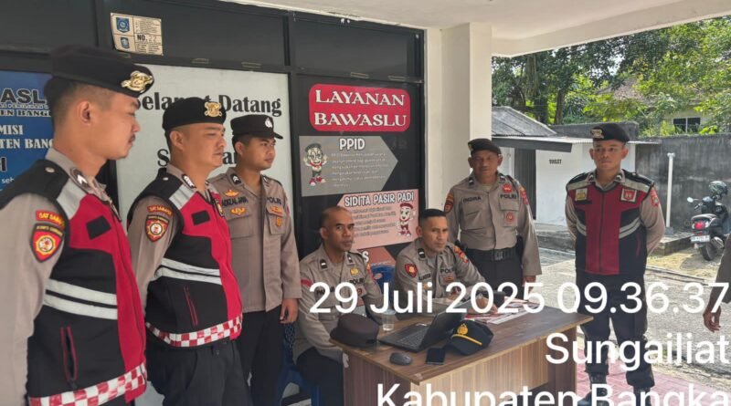 Sungailiat, portalbabel – Jelang Pemilu Ulang 2025 Kabupaten Bangka, Satuan Samapta Polres Bangka selaku Satgas Preventif dalam Operasi Mantap Praja (OMP) 2025 melakukan pengamanan, penjagaan serta patroli ke kantor Komisi Pemilihan Umum (KPU) Bangka, Kantor Badan Pengawasan Pemilu (Bawaslu) Bangka. Selasa (29/7/2025).