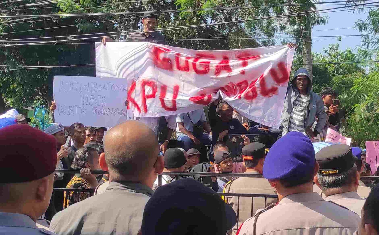 Massa mempertanyakan keputusan KPU Bangka yang menyatakan pasangan tersebut tidak memenuhi syarat (TMS) menjadi peserta Pilkada Ulang 2025.