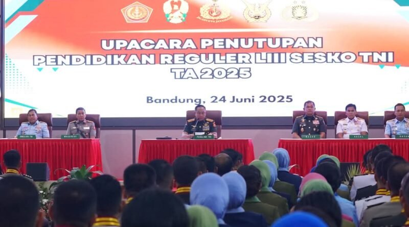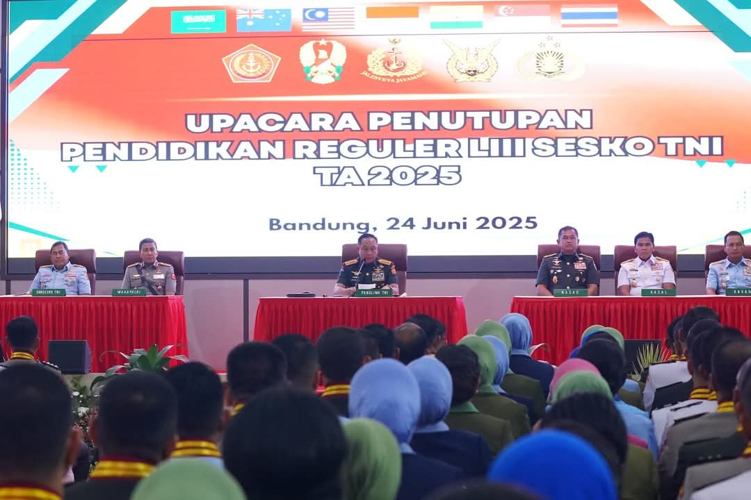 Bandung, portalbabel — Panglima TNI Jenderal TNI Agus Subiyanto secara resmi menutup Pendidikan Reguler (Dikreg) LIII Sekolah Staf dan Komando (Sesko) TNI Tahun Anggaran 2025 dalam sebuah upacara khidmat di Gedung Serasan, Sesko TNI, Bandung, Jawa Barat, Selasa (24/6/2025).